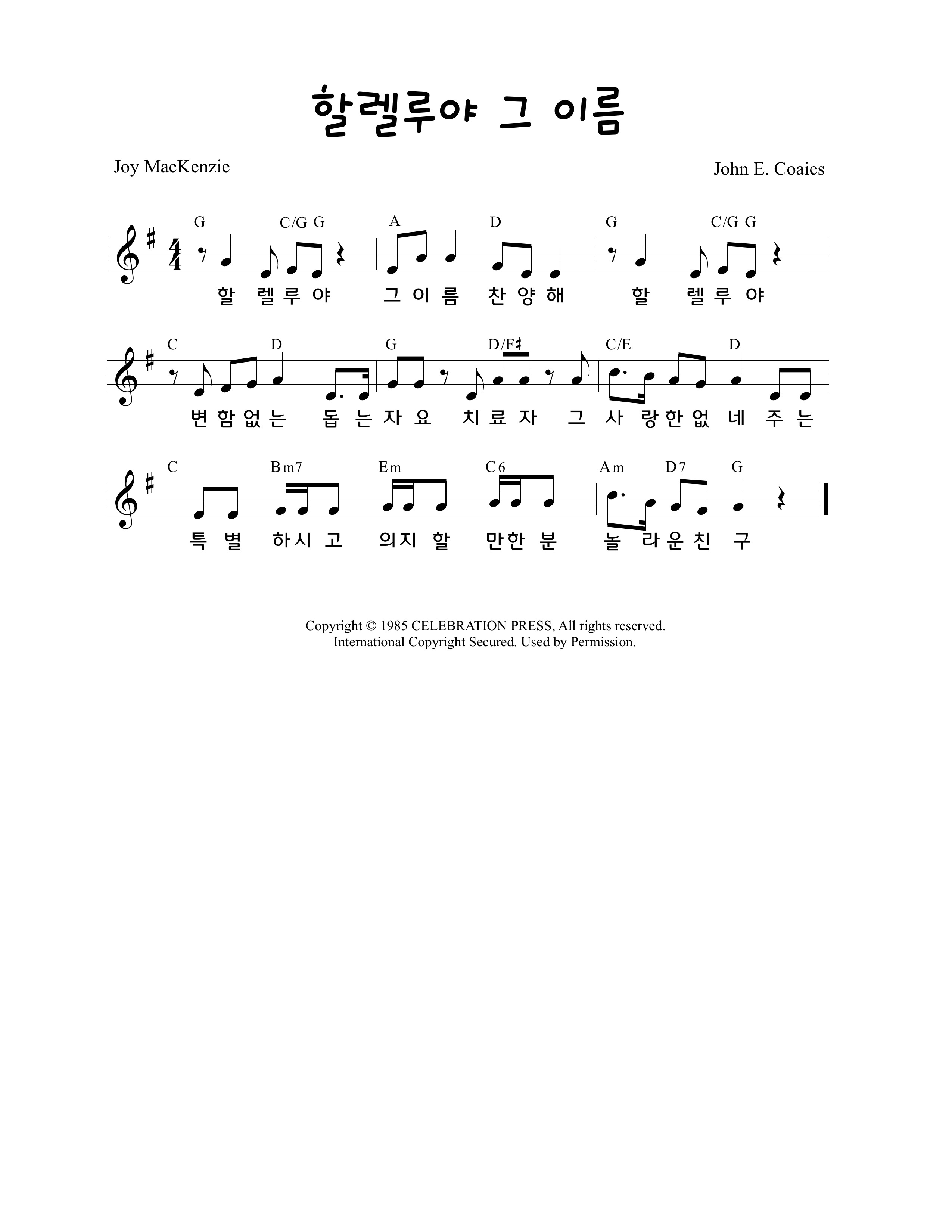 260314(토) '할렐루야 그 이름' 악보