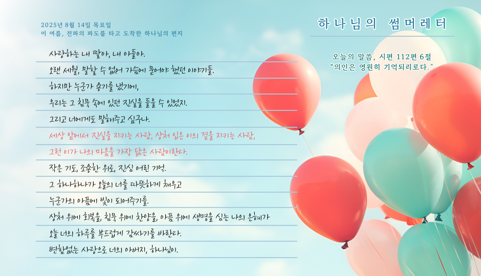 [사랑의뜰안] 8월 14일 목요일, 하나님의 썸머레터