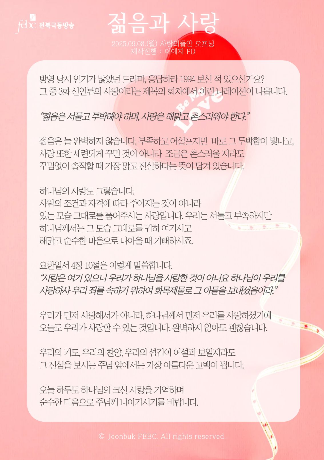 [전북] 25.09.08(월) 사랑의뜰안 오프닝 "젊음과 사랑"