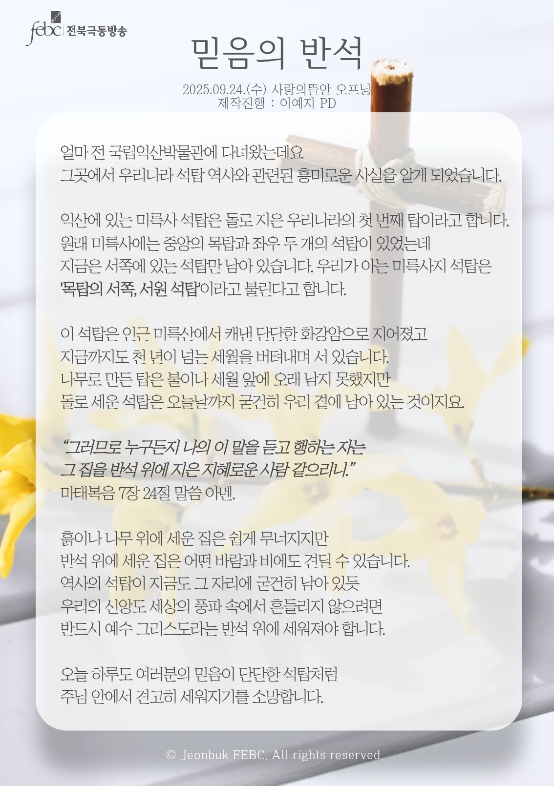 [전북] 25.09.25.(목) 사랑의뜰안 오프닝 "믿음의 반석"