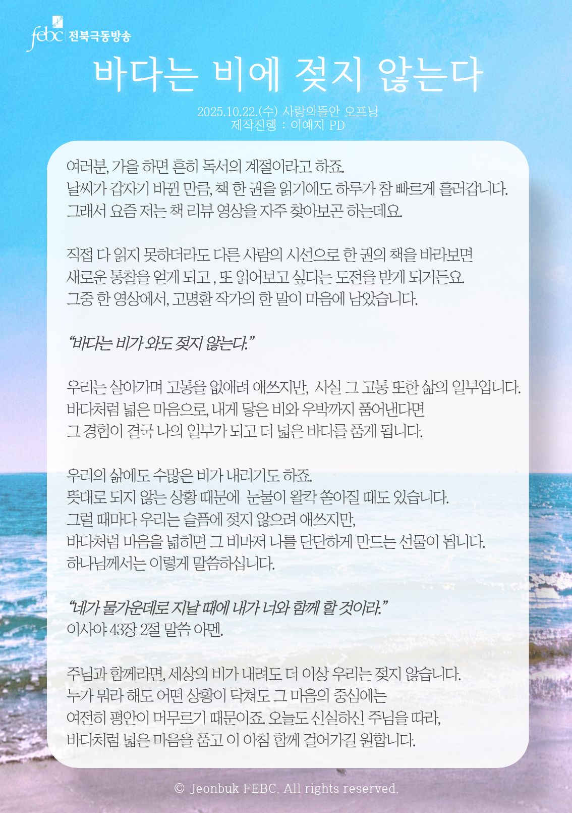 [전북] 25.10.22.(수) 사랑의뜰안 오프닝 "바다는 비에 젖지 않는다"