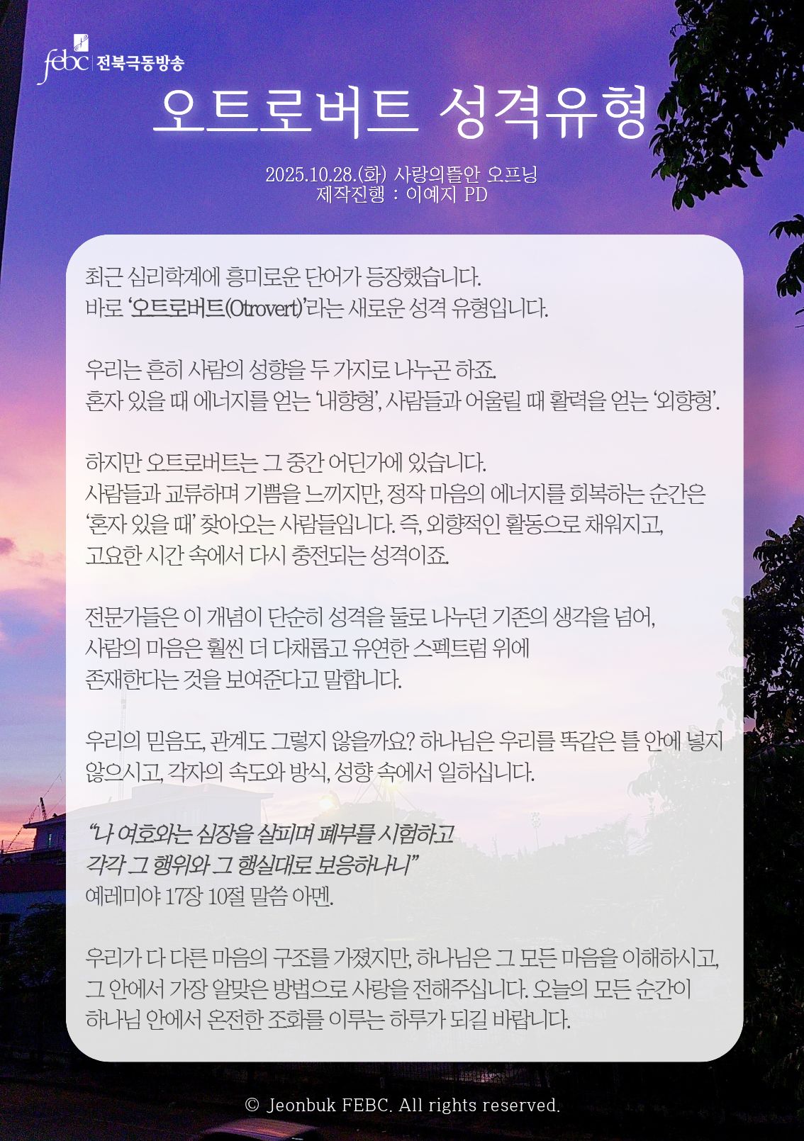 [전북] 25.10.28.(화) 사랑의뜰안 오프닝 "오트로버트 성격유형"