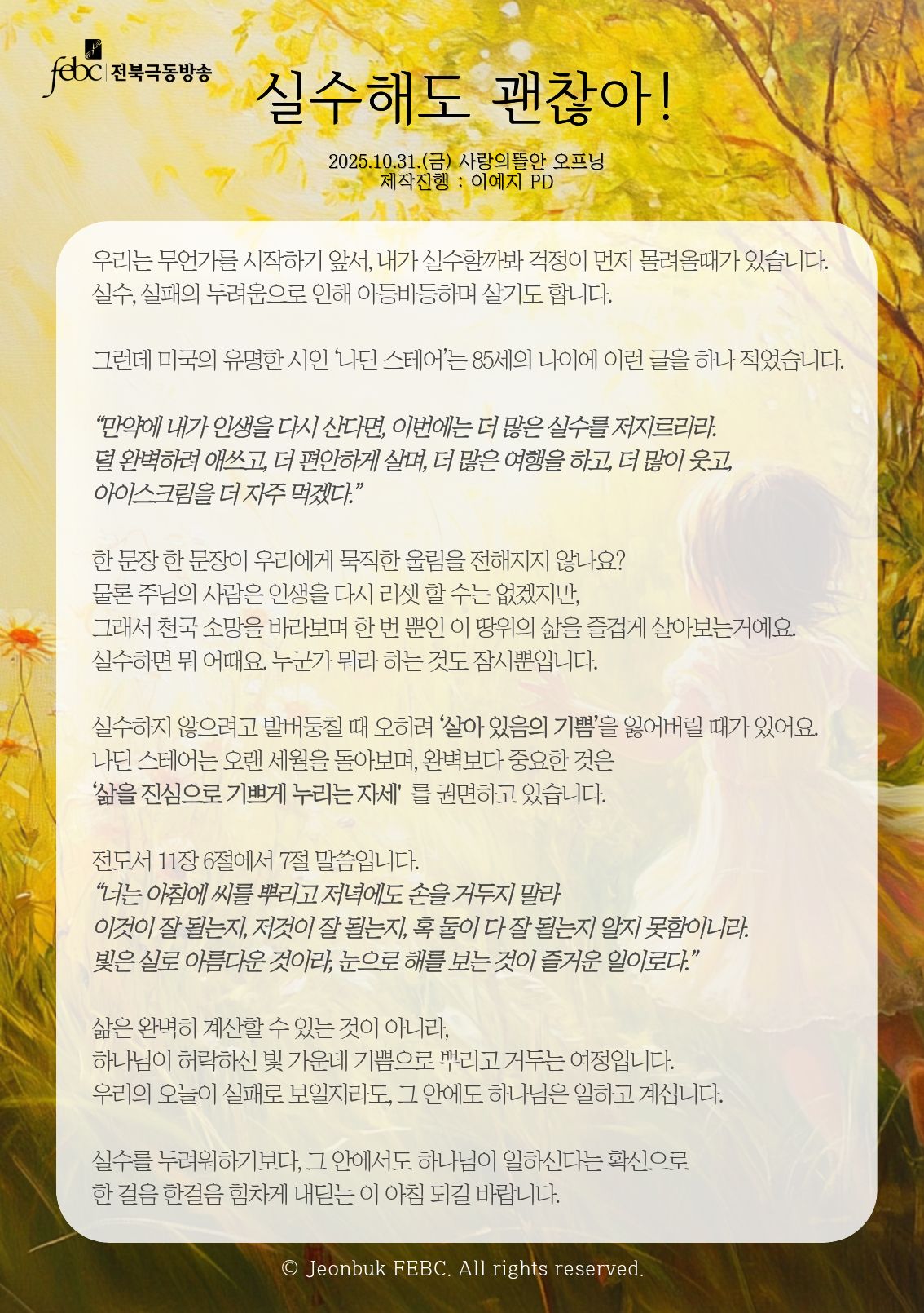 [전북] 25.10.31.(금) 사랑의뜰안 오프닝 "실수해도 괜찮아"