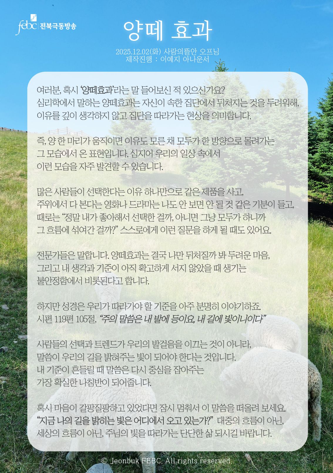 [전북] 25.12.02.(화) 사랑의뜰안 오프닝 "양떼 효과"