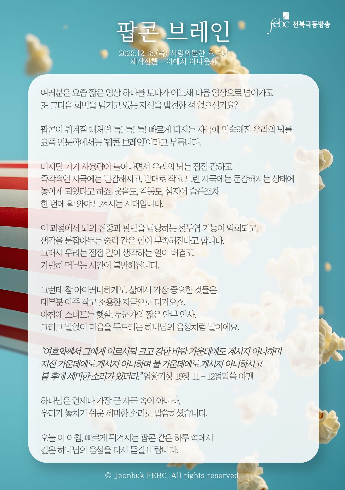 [전북] 25.12.18.(목) 사랑의뜰안 오프닝 "팝콘 브레인"