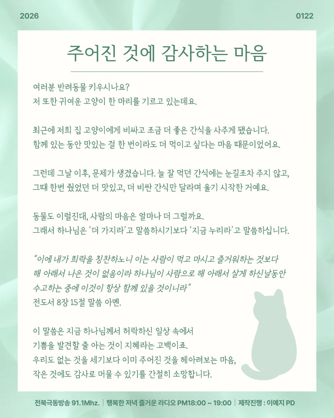 2026년 1월 22일 오프닝 [ 주어진 것에 감사하는 마음 ]