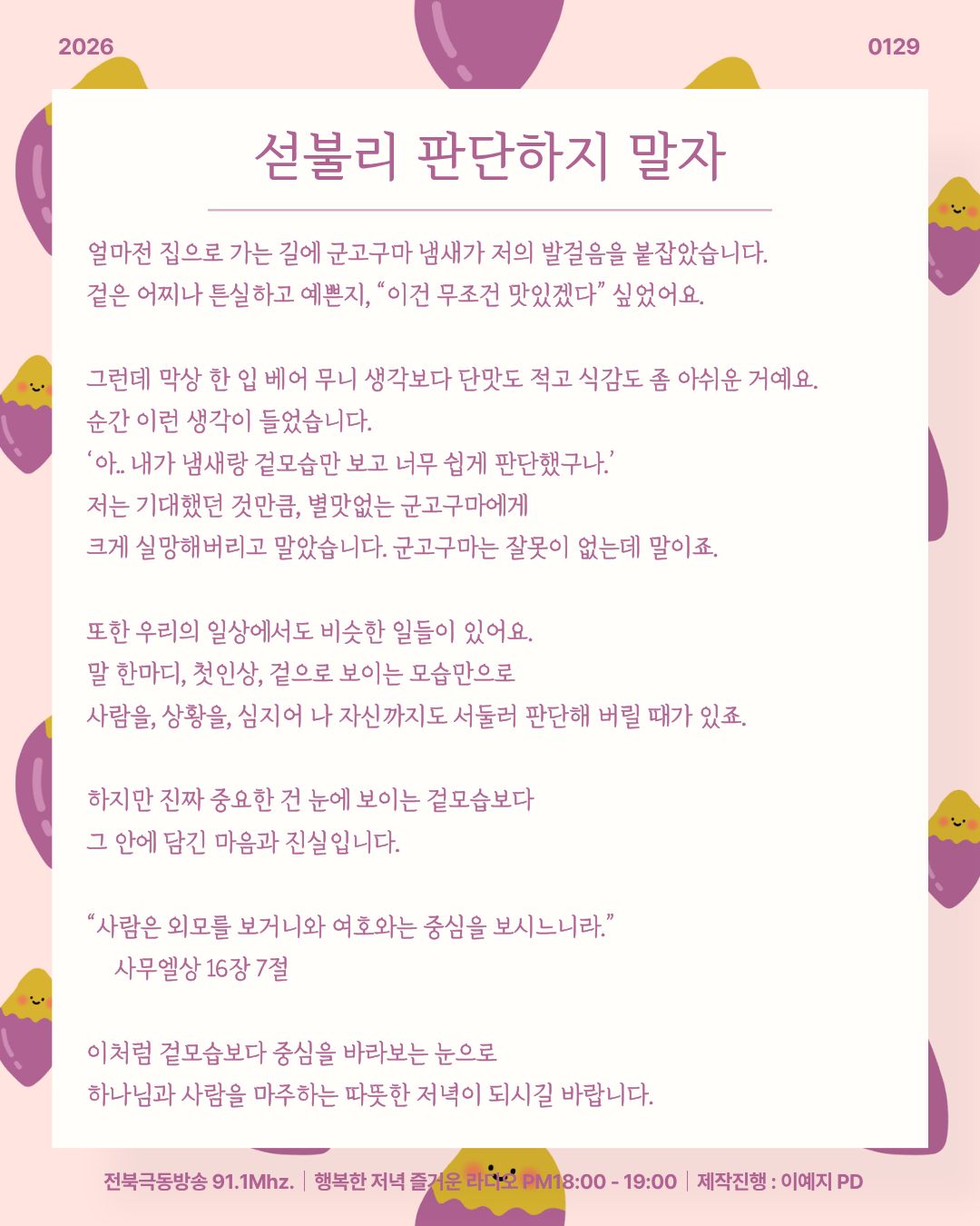 2026년 1월 30일 오프닝 [ 내 마음을 가득 채운 ]