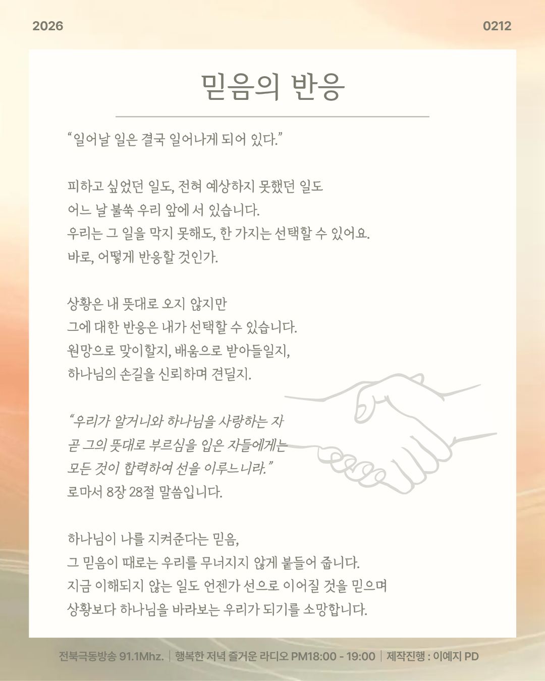 2026년 2월 12일 오프닝 [ 믿음의 반응 ]
